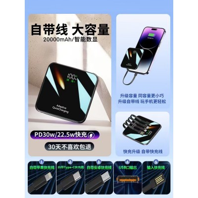 【新国标3C认证】2025新款充电宝快充大容量20000毫安自带线超薄小巧便携政府补贴适用苹果官方专用飞机可带
