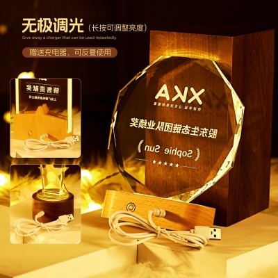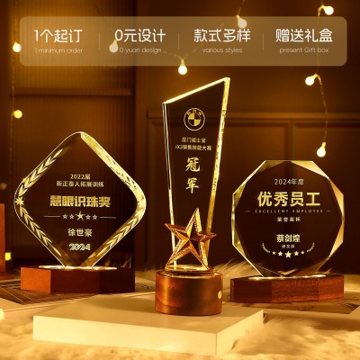 创意发光水晶奖杯定制定做2025新款冠军奖牌高档大气月嫂摆件纪念
